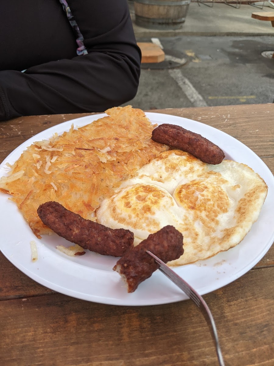 The menu focuses on comforting breakfast and lunch staples done well, with highlights like biscuits and gravy, banana pancakes topped with whipped cream, and the farm waffle crowned with an egg. Portions are generous, catering well to those who come hungry for a classic diner-style meal. The two or three egg breakfast options come with the expected sides of hash browns and toast, with add-ons like bacon, sausage, or ham rounding out the plate. Burgers and sandwiches also feature for lunchtime, staying faithful to diner traditions with straightforward builds and fresh fries.
